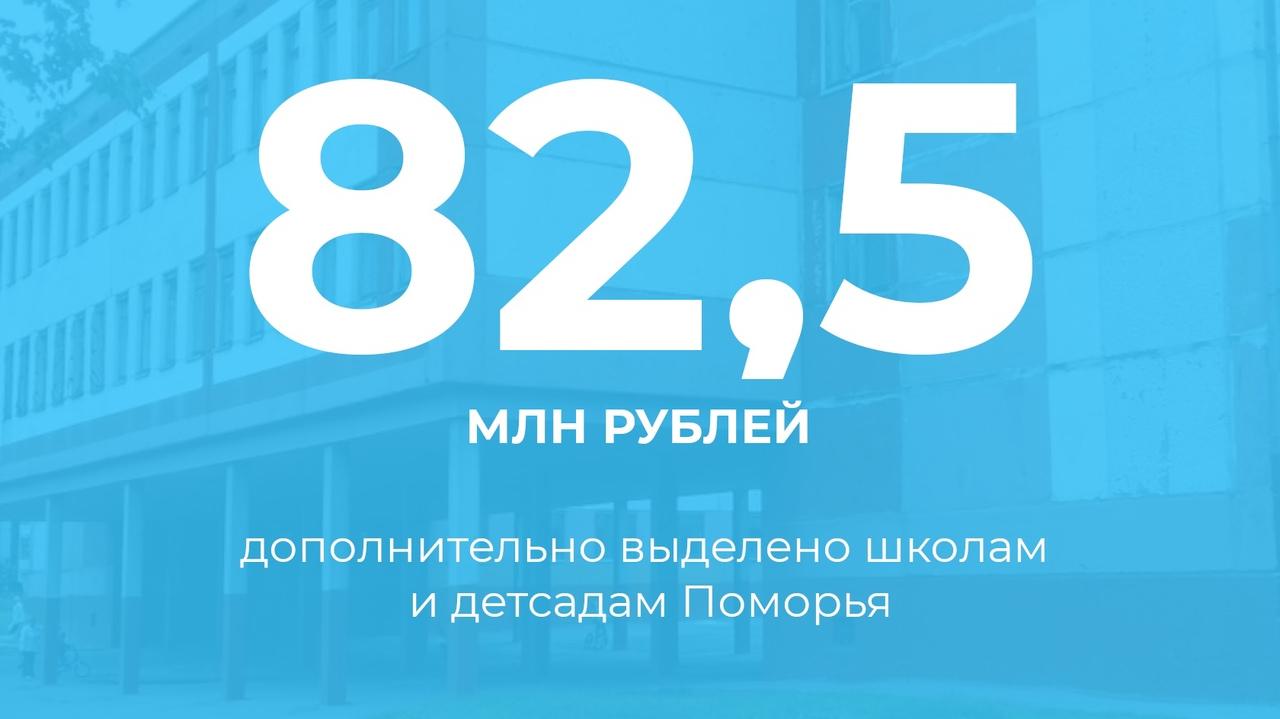 Более 82,5 млн рублей дополнительно выделено школам и детсадам Поморья
